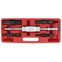 The old wheel bearings have to be pulled from the center of the wheel using a Blind Hole Bearing Puller. Not having one of those I waited until my son Jake had a free Saturday morning to help me, since I did not have enough dough to cover the deposit on the tool kit. We barrowed tool kit free from AutoZone using his debit/credit card. Note, when we returned the tool kit they will only give you cash back, not credit the card back.